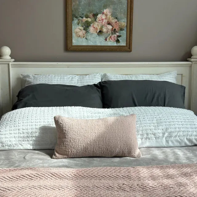 I put it in an antique frame & the pink & grey hues match my bedroom perfectly. Love it.