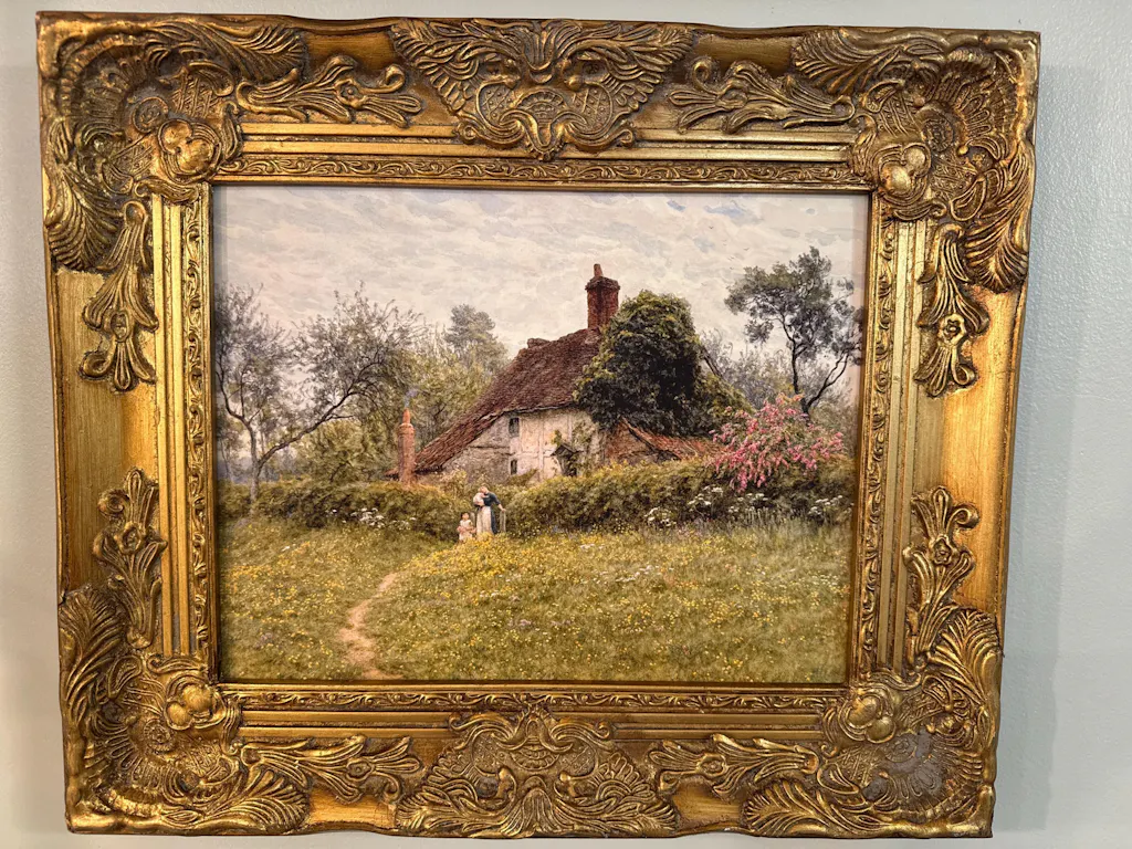 "Cottages at Pinner," painted by Helen Allingham circa 1885. Retouched by AnnaPrintsCo.