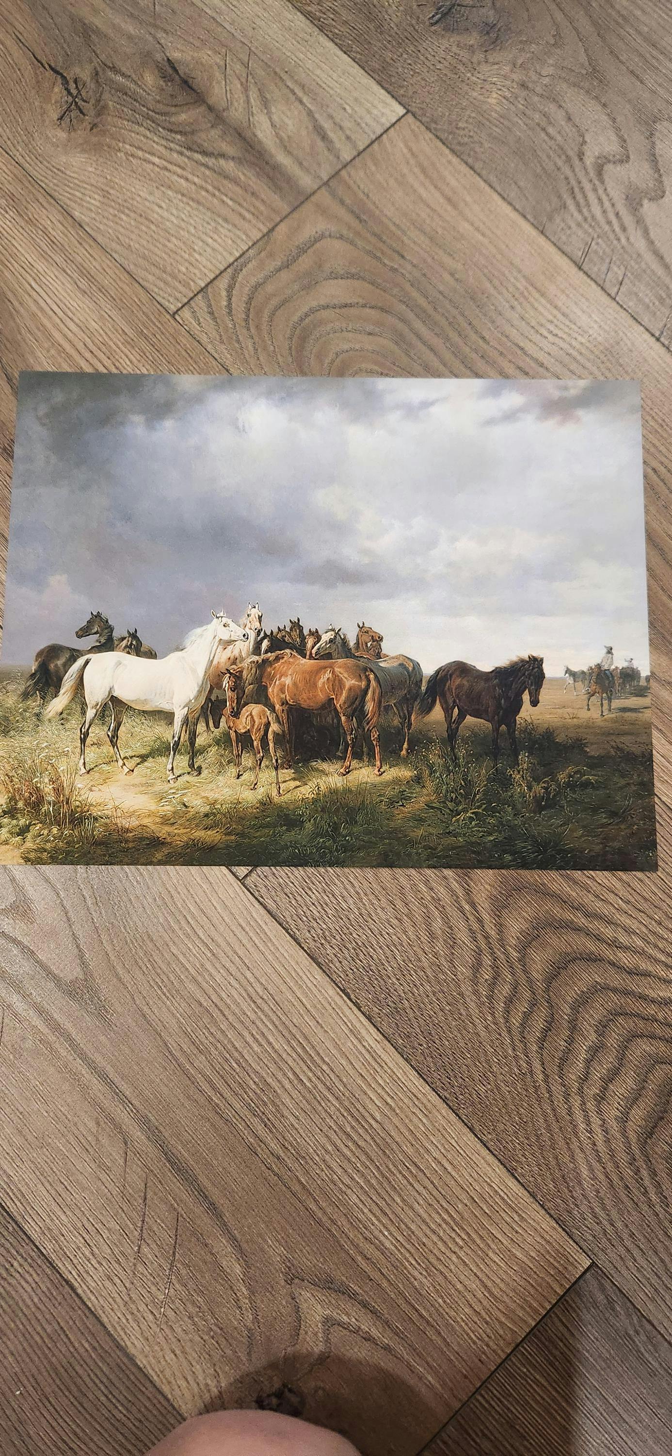 "Horses on the Puszta," painted by Franz Adam in 1858. Retouched by AnnaPrintsCo.
