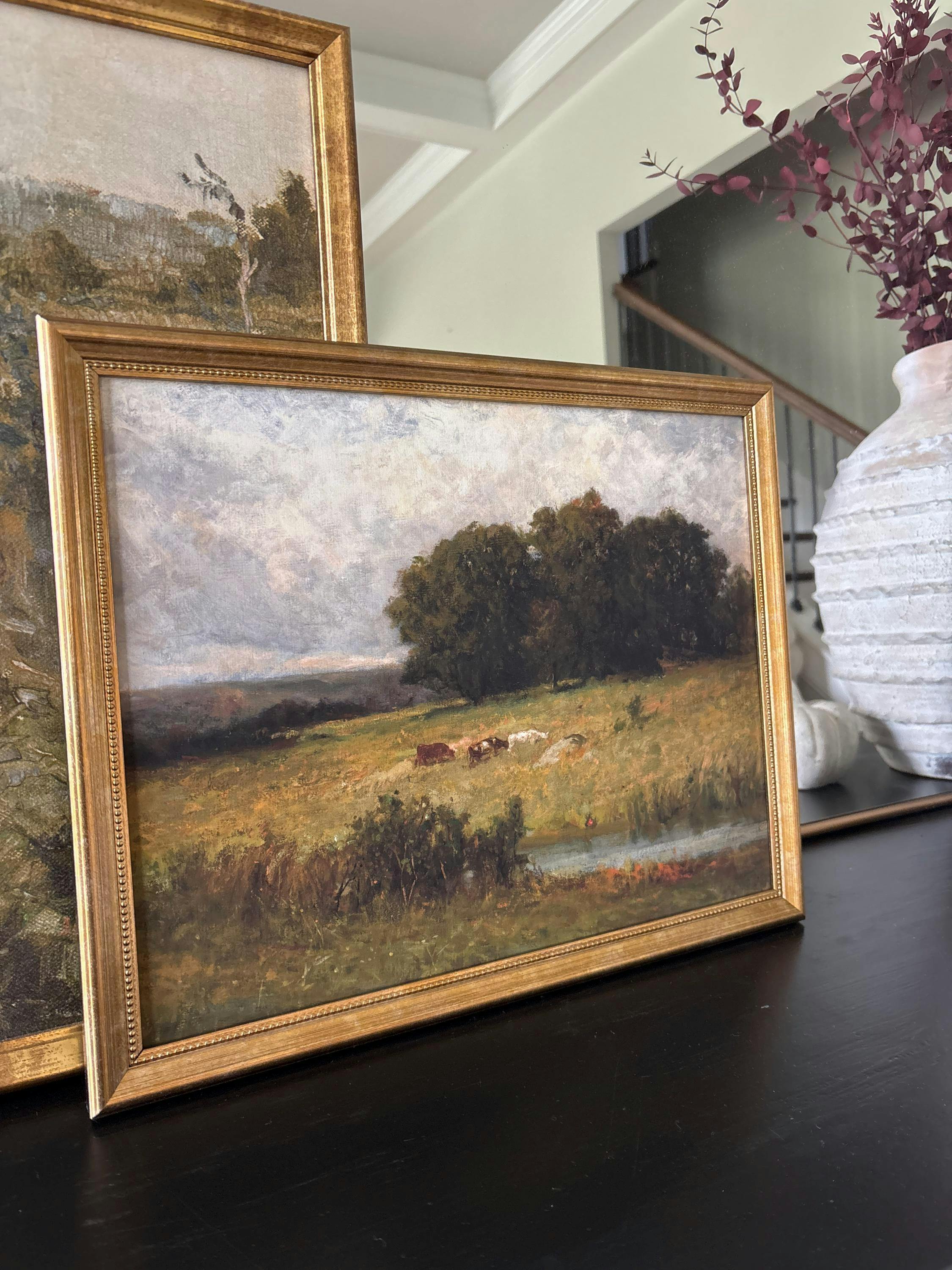 "Bright Scene of Cattle near Stream," painted by Edward Mitchell Bannister in the 19th century. Retouched by AnnaPrintsCo.